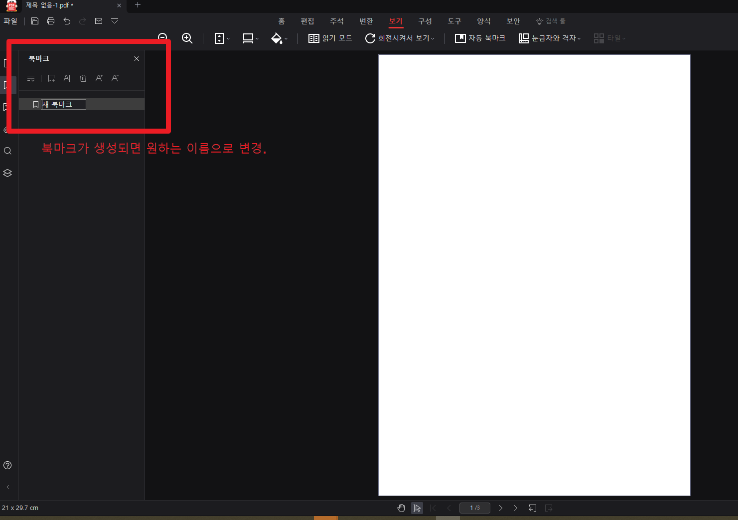 5. 북마크 생성되면 원하는 제목으로 변경가능.